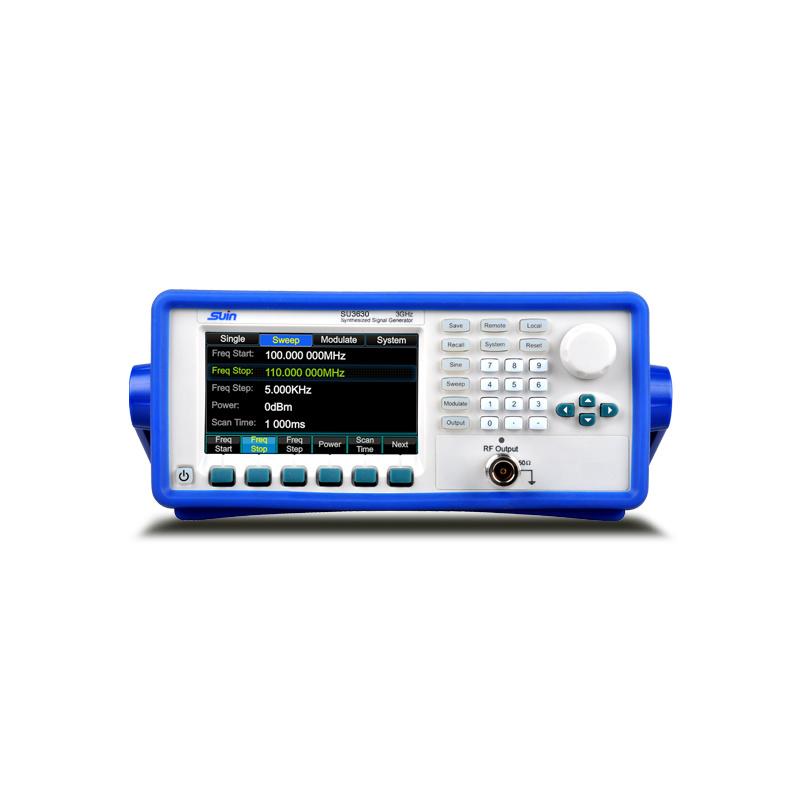 SU3630 Synthesized Signal Generator adopting phase-lock technique(phase lock loop controlling the oscillator) to synthesize frequency signal, SU3630 is 3GHz microwave synthesized signal generator, with reference frequency output 10MHz, low phase noise, 20kHz offset, -60dBm~ +10dBm output power range. High stability and high-frequency resolution, plus amplifier and pulse modulation function, make SU3630 have more applications in R&D, Lab, industrial field, test measurement and calibration, metrology systems. Please contact us to get its general information, high-quality product, better after-sales service are promised to provide to you. If you want to get solutions, we can also make videos for your reference.