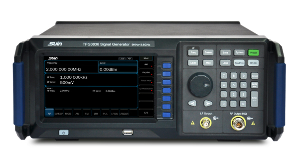 Suin’s TFG3836 RF signal generators have a frequency range from 9KHz to 3.6GHz. Except of normal analog modulation such as AM, FM and φM, it can also provide pulse modulation. In addition, sweep capability for frequency and power could also be supported.
